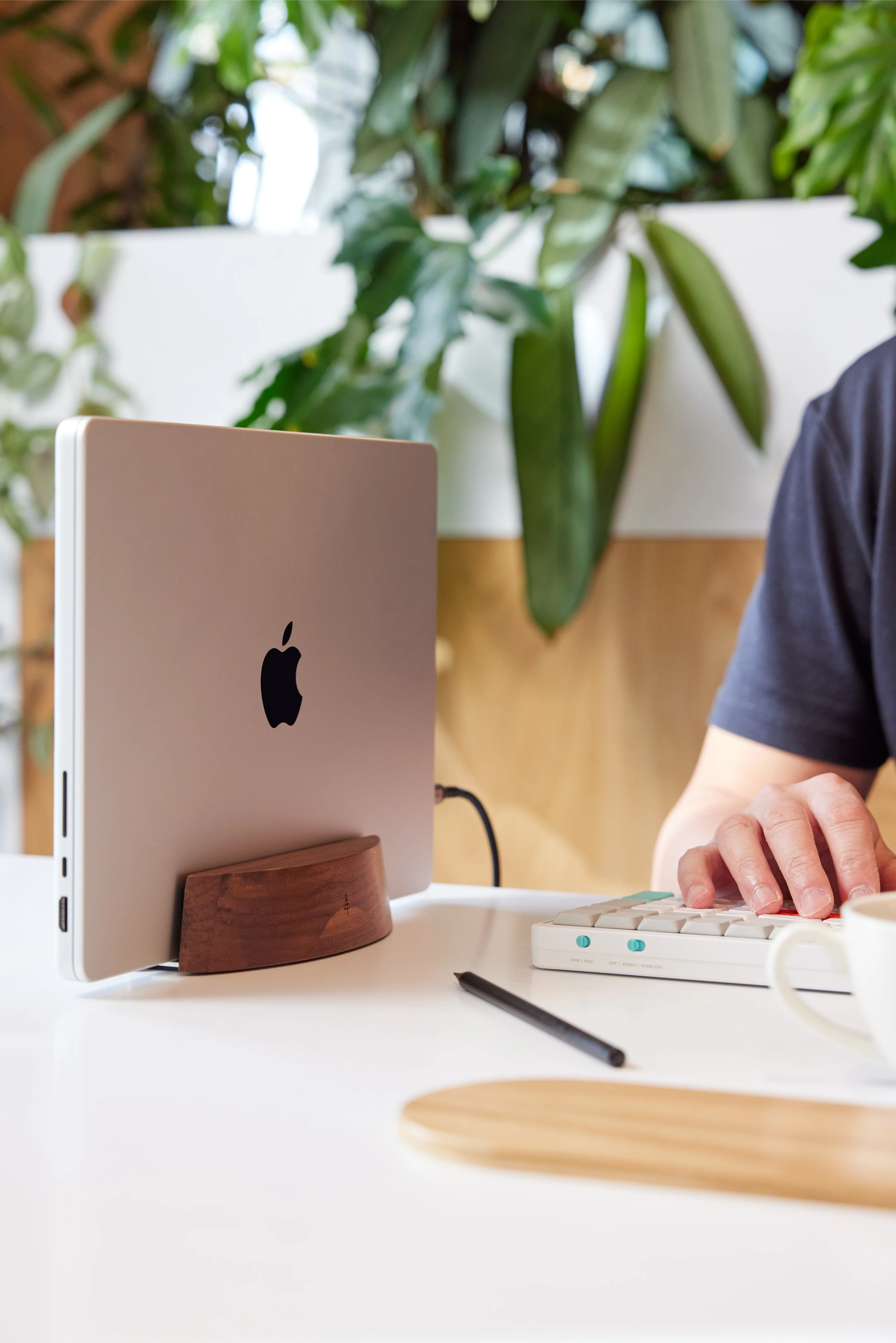 Nordik Vertical Laptop Dock is the perfect blend of elegance and efficiency. Maximize your home office workspace with this laptop holder, ensuring stability and organization for your laptops.